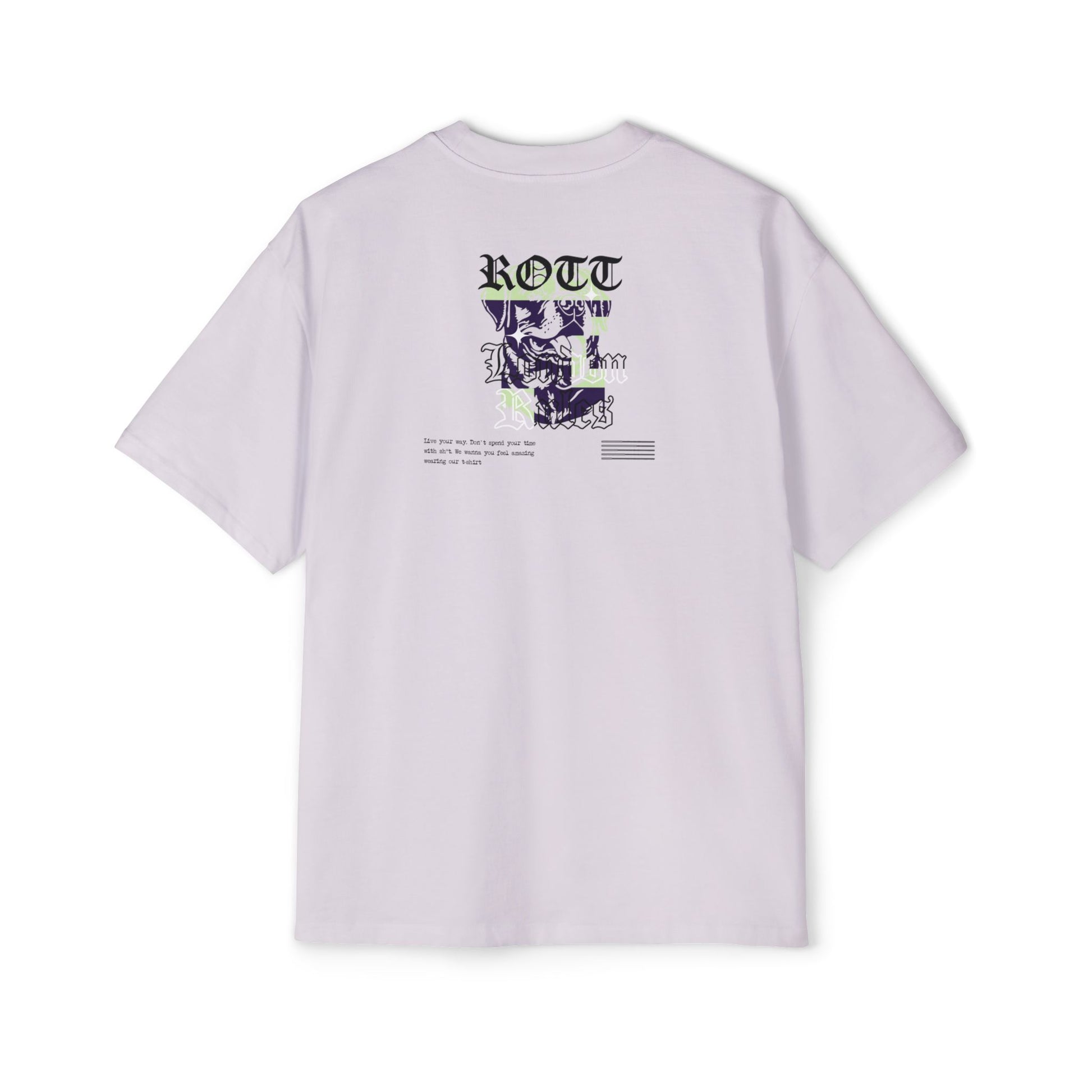 Soft, boxy, and unapologetically relaxed — this tee sits oversized across the shoulders and drapes with quiet confidence. A small, detailed chest illustration pairs with a layered graphic on the upper back, giving the shirt an artful, street-ready edge without shouting. The medium-weight cotton feels substantial yet breathable, so it layers easily under a jacket or stands alone on warmer days. Wear it when you want to move freely, sketch in a sunlit cafe, or stroll city blocks hunting for vinyl — it blends effortless comfort with thoughtful, slightly offbeat style.