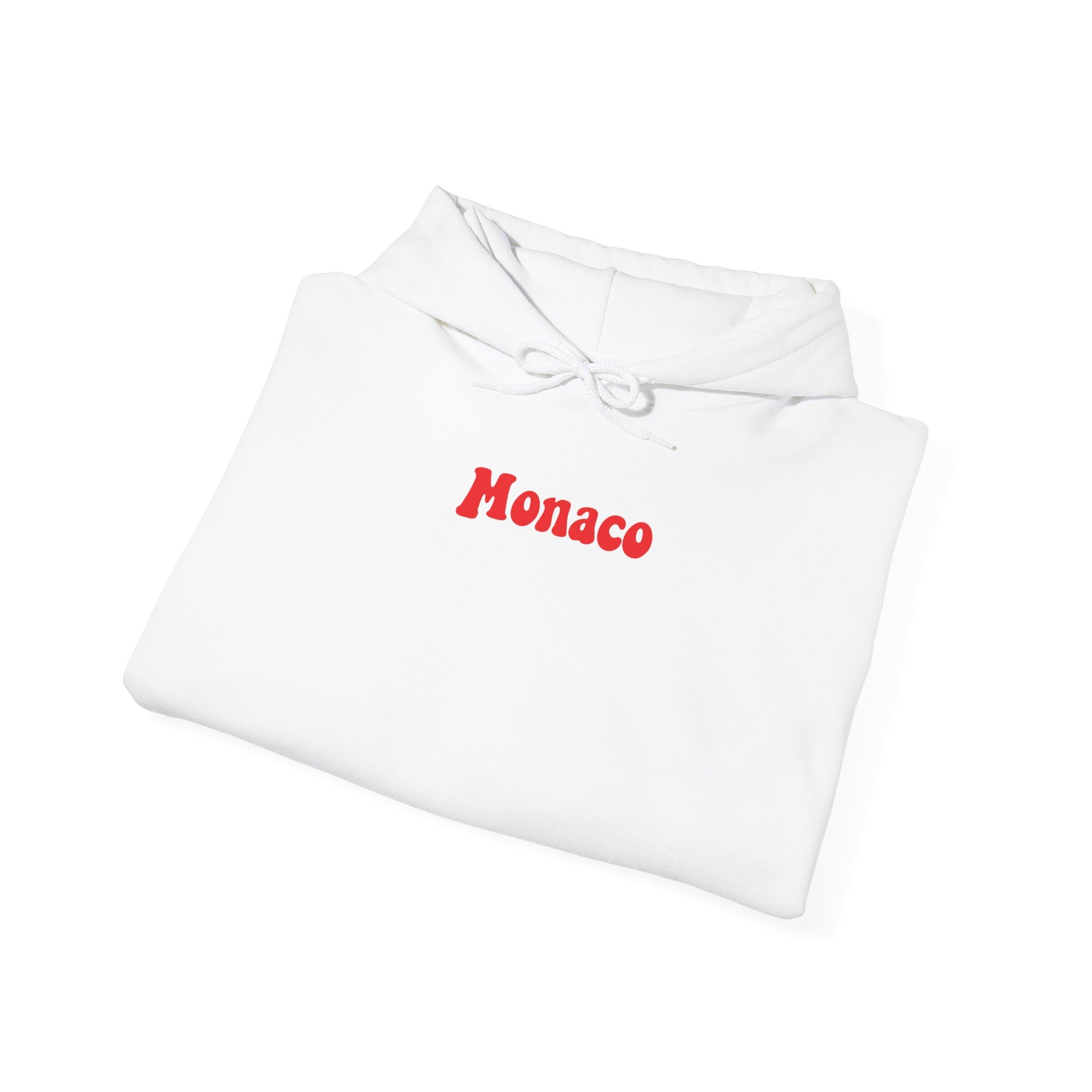 Soft, cozy, and quietly bold — this heavyweight hooded sweatshirt wraps you in warmth while carrying a playful, vintage-inspired vibe. The clean white canvas puts the red “Monaco” chest lettering front and center, while the back’s sculpted, shadowed phrase adds a wink of attitude that reads like a late-night joke between friends. Rounded cuffs and a roomy kangaroo pocket keep hands warm; the double-lined hood and color-matched drawcord lock in that lived-in look. Wear it on chilly walks, low-key nights out, or when you want to layer something effortless that still says something about where you’ve been or where you’re headed.